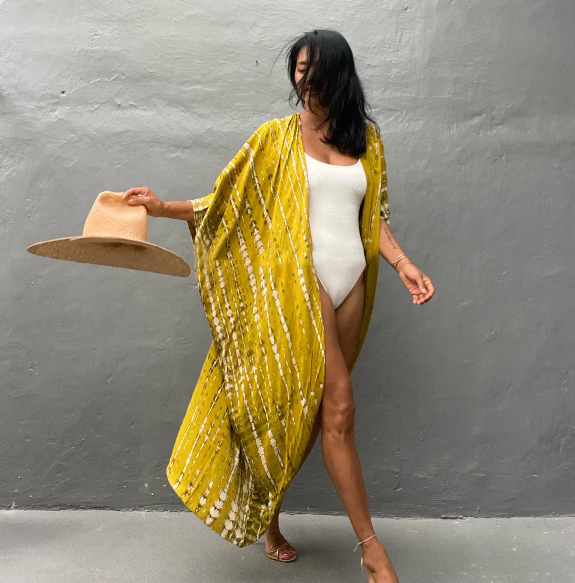 Un kimono de plage jaune tie dye qui illumine vos looks d’été