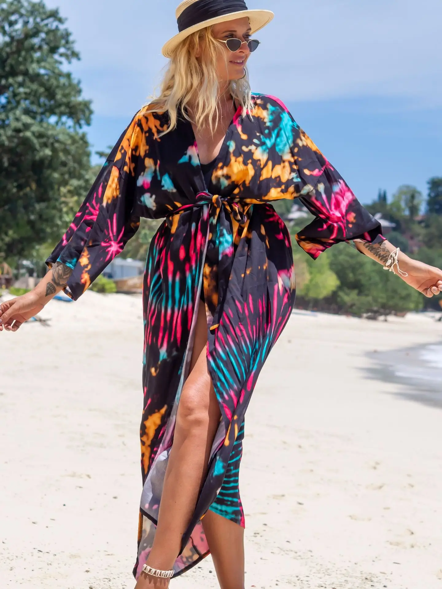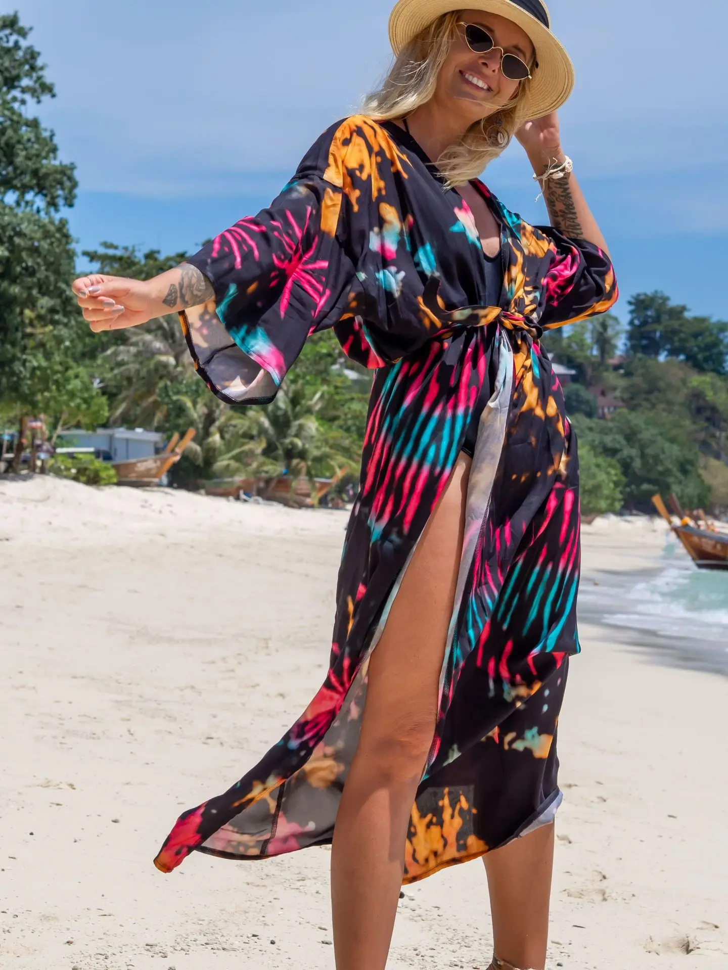 Découvrez notre kimono de plage femme « Bonheur Estival », une pièce essentielle de votre garde-robe estivale. Avec ses couleurs lumineuses et son tissu léger et respirant, ce kimono transparent met en valeur votre maillot de bain tout en ajoutant une touche florale à votre look. Son design fluide et sa transparence maîtrisée vous permettent de dévoiler vos atouts tout en restant élégante sur la plage.