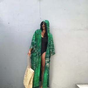 Ajoutez le Kimono de plage vert émeraude à votre panier et commencez à imaginer les multiples façons de le porter. Il se marie à la perfection avec votre maillot favori, faisant de votre ensemble une véritable déclaration de style sur le sable. Ce cover-up maillot de bain est un indispensable de la saison.