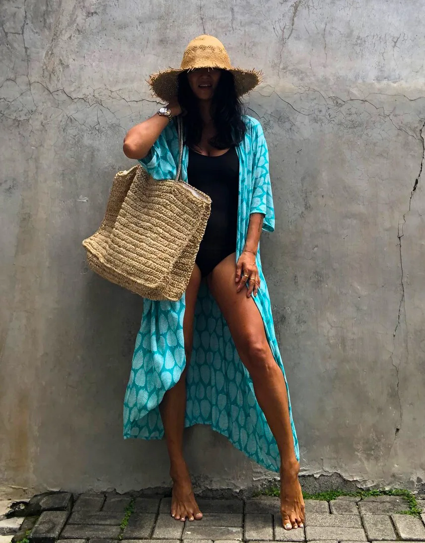 kimono de plage léger bleu cyan