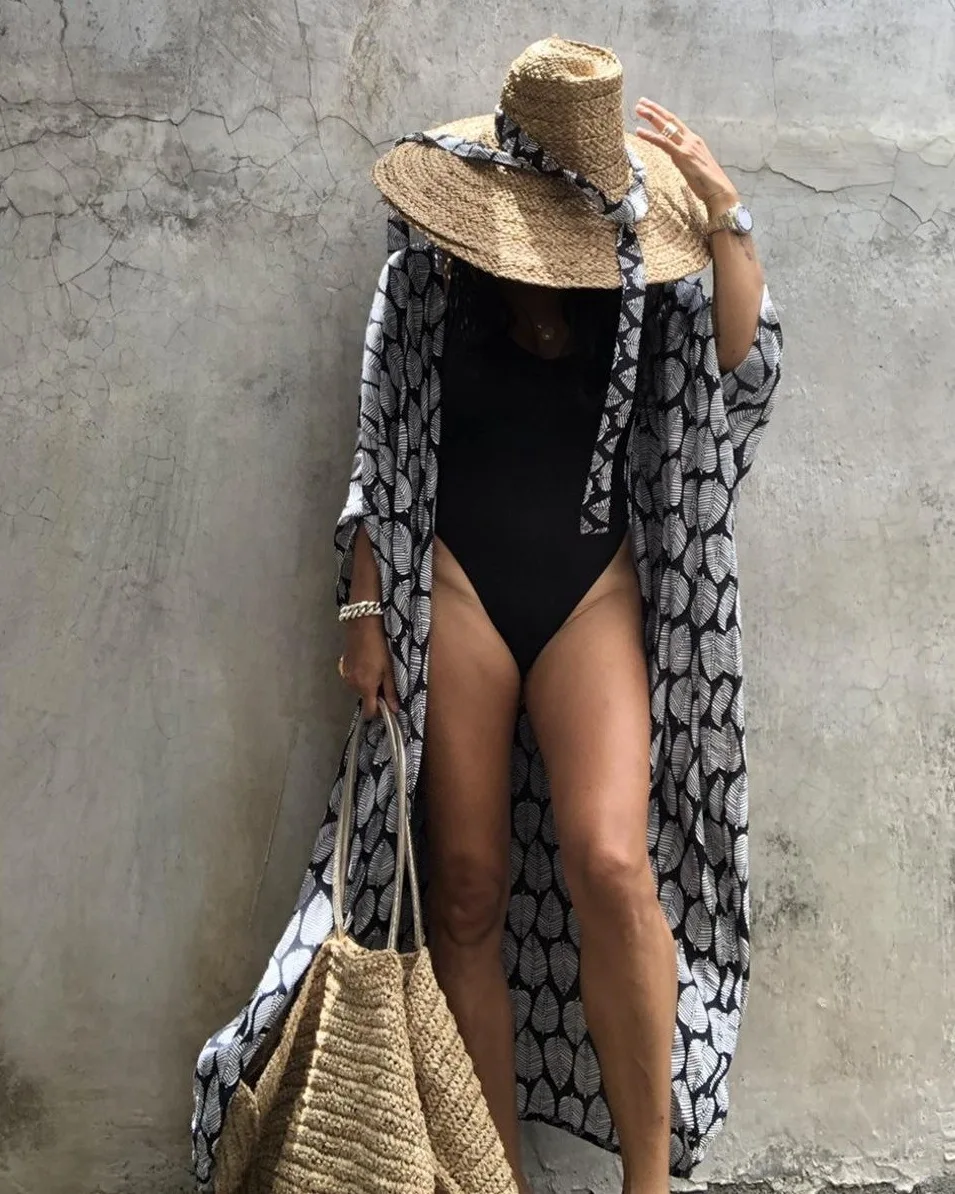 Kimono De Plage Léger Noir| Feuille : à ne pas manquer