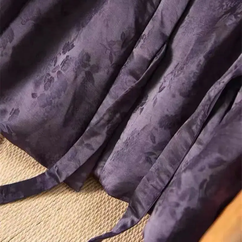 Laissez-vous séduire par la richesse et la beauté du motif jacquard fleuri de notre kimono, qui captive l’œil dès le premier regard. La teinte violette évoque une sophistication et un mystère qui créent un effet wow visuel, parfait pour celles qui aiment se démarquer. Sa coupe unique et son esthétique raffinée attirent particulièrement les amoureux de la mode élégante et originale.