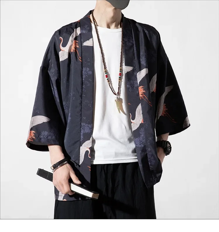 En soirée, sa coupe drapée apporte du relief à votre look, fusionnant culture urbaine et héritage nippon. Accompagnez-le de pièces tendance pour un ensemble qui se démarque : le kimono streetwear réinvente le chic au masculin.