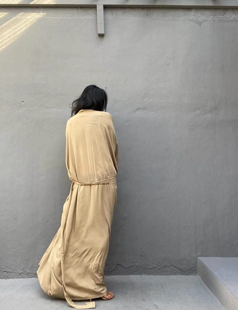 Kimono long femme uni beige l’élégance minimaliste qui attire tous les regards