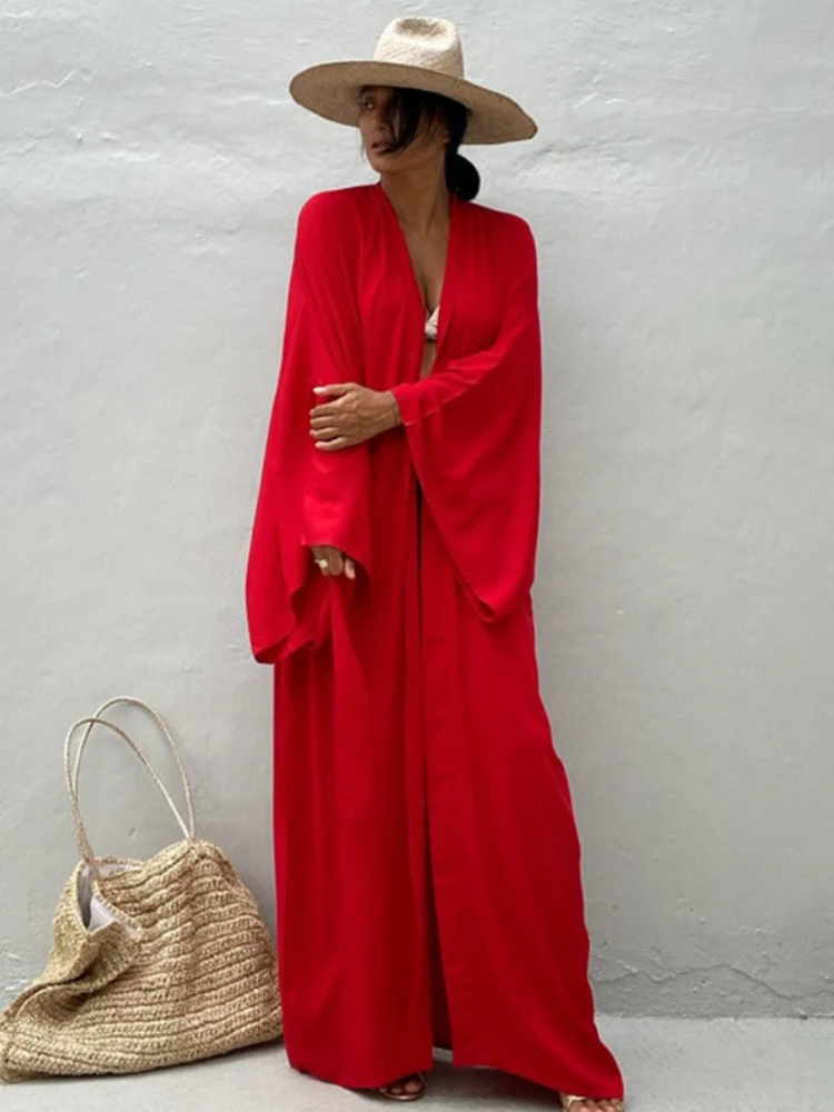 Kimono long femme uni rouge la touche éclat qui transforme une tenue en un instant