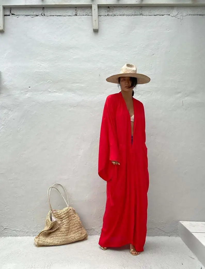 Ce kimono peut être votre allié pour de multiples moments : un apéritif en terrasse, un cocktail élégant ou une promenade au bord de la mer. Il raconte votre style au gré des occasions, tout en vous apportant une tenue élégante rouge femme toujours au goût du jour.