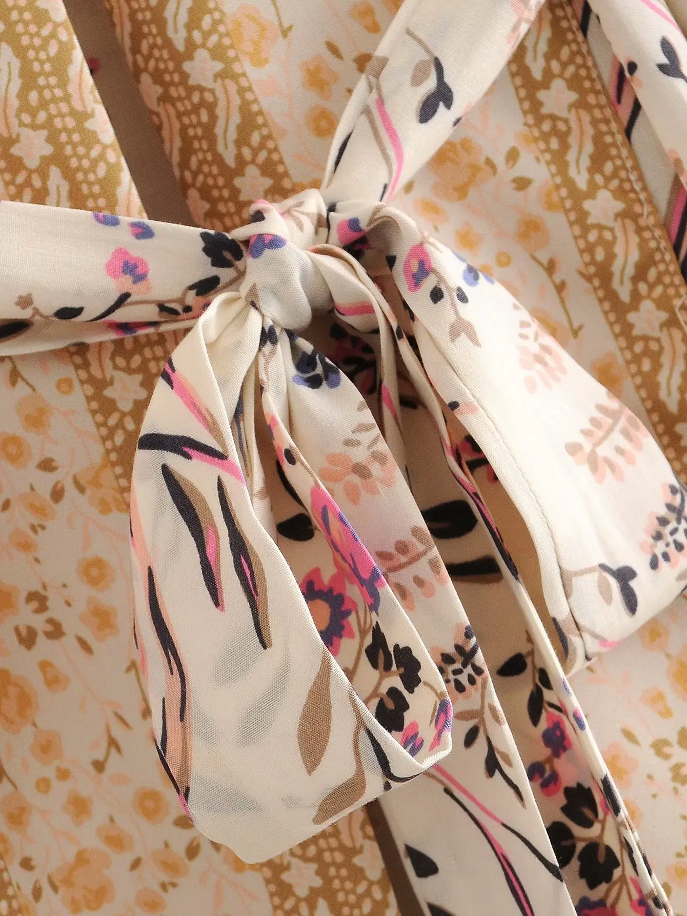 Confort fluide et polyvalence d’un yukata floral beige au quotidien