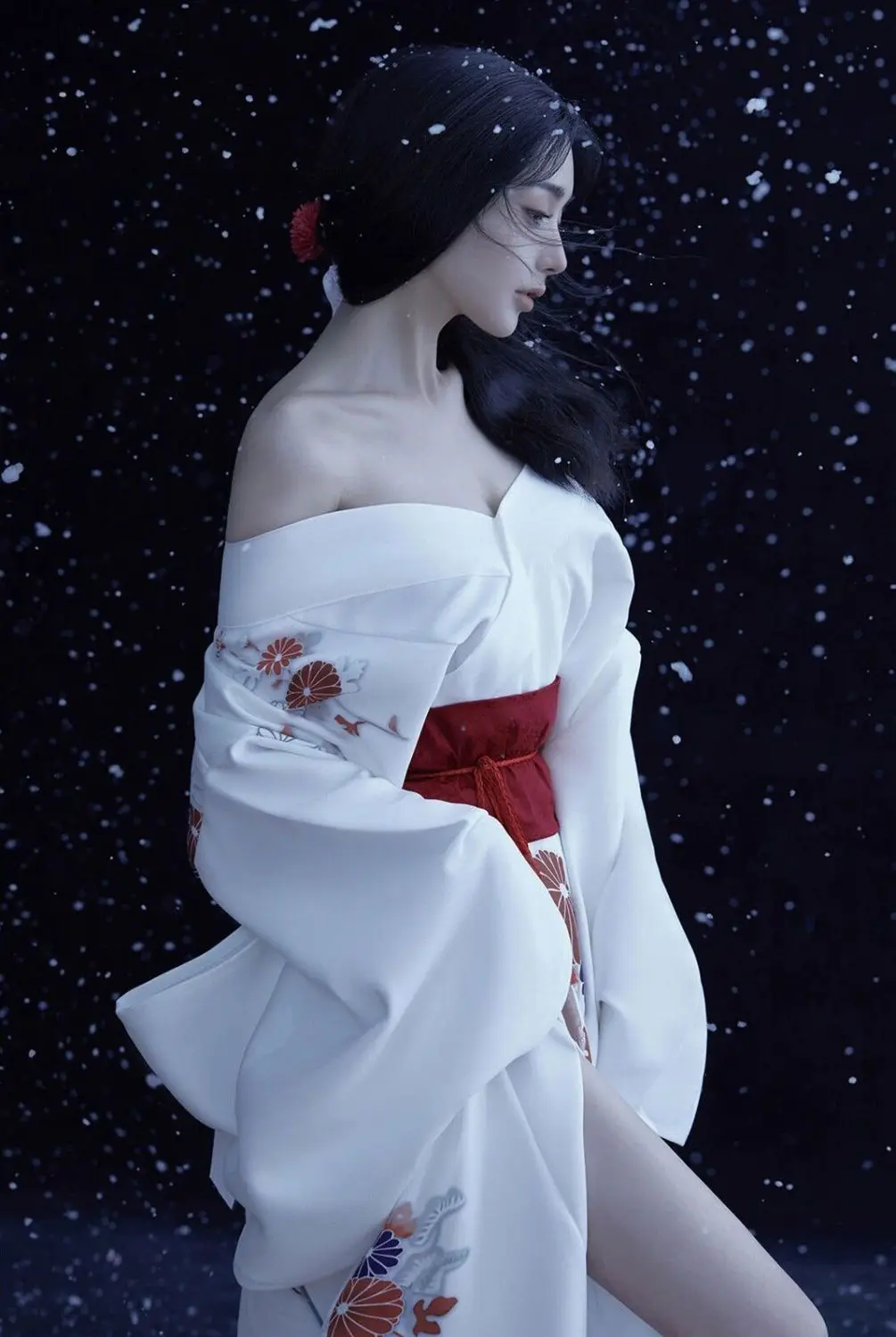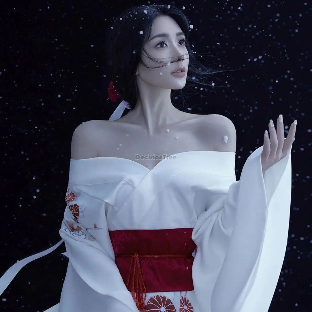 Kimono Traditonnel Japonais Femme Blanc | Obi Rouge : pour vous satisfaire
