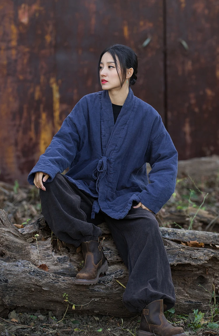 La coupe kimono, avec ses manches amples et son col enveloppant, exalte un détail mode fort qui s’intègre harmonieusement dans votre garde-robe. Ce manteau style japonais vous assure confort et élégance à chaque occasion.