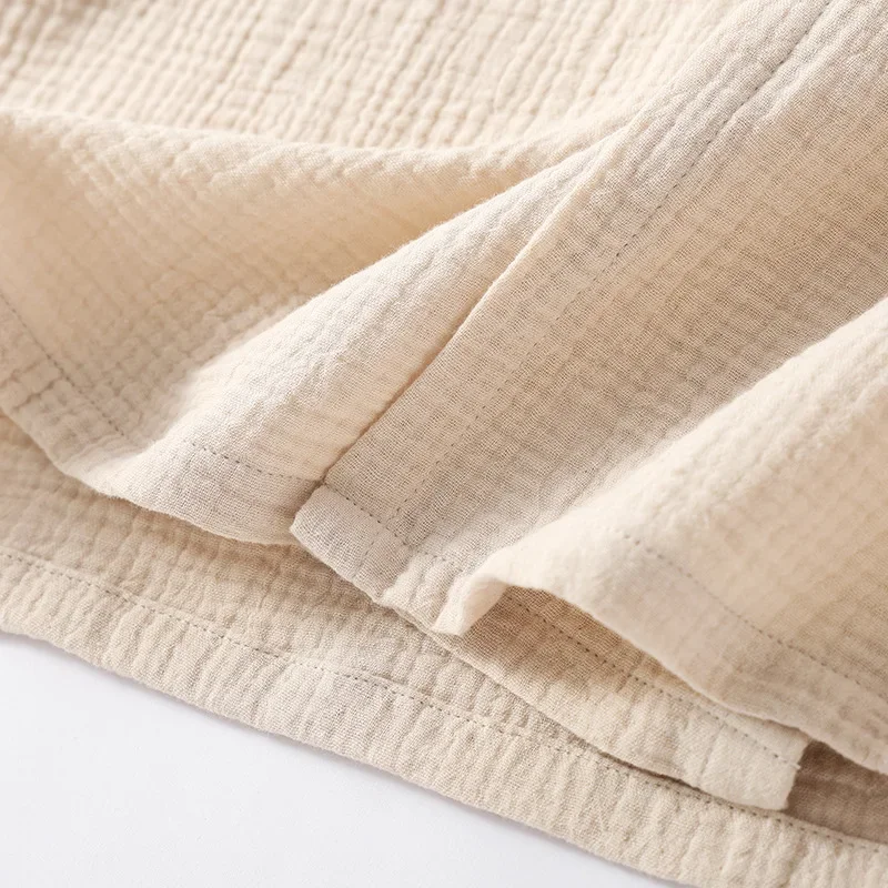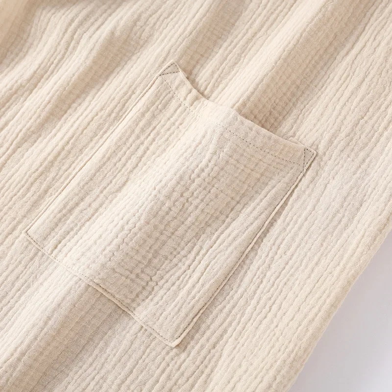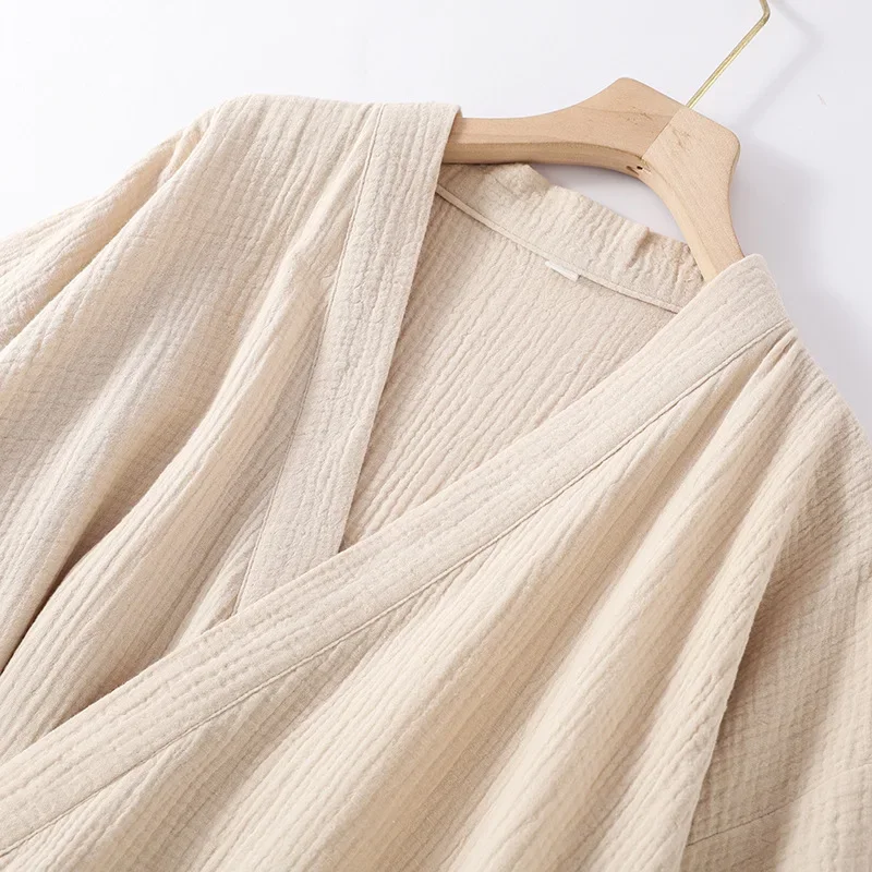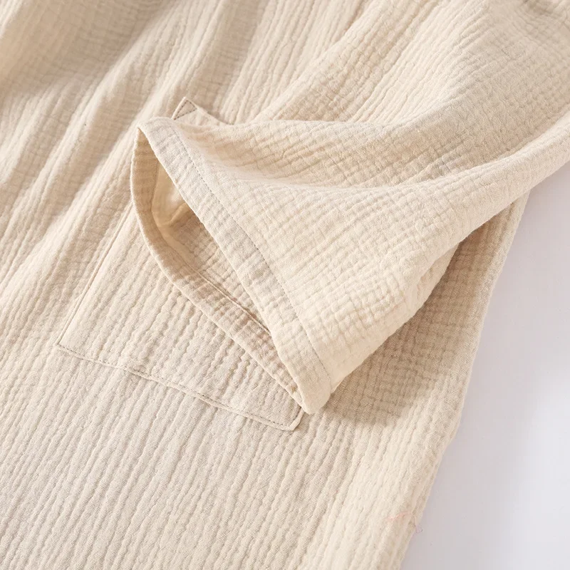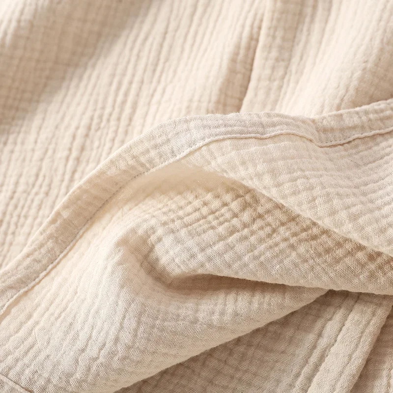 Confectionné en gaze de coton, ce peignoir offre des propriétés exceptionnelles telles que la Légèreté, la respirabilité et une douceur incomparable au toucher. Chaque interaction avec le tissu est un véritable plaisir, propice à la relaxation et au bien-être.