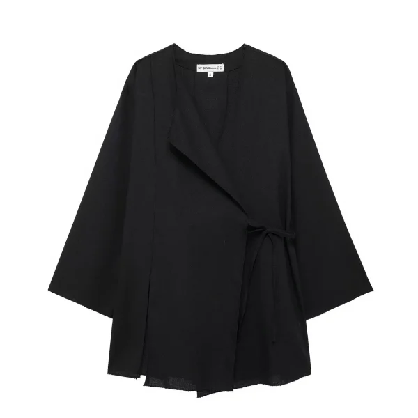 La couleur noire intemporelle de cette veste offre une polyvalence qui sublime toutes les tenues. Que vous soyez en quête d’un style décontracté ou d’une allure plus formelle, cette veste kimono s’adapte aisément à vos besoins, devenant ainsi un élément incontournable de votre garde-robe.