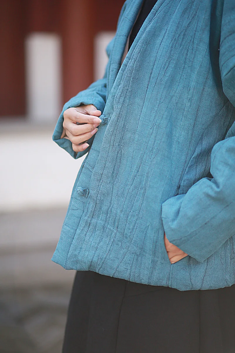 Le matin, vous enfilez cette kimono-veste matelassée bleu élégant sur une chemise pour une tenue bureau décontractée qui impose une élégance calme. Son confort et sa chaleur légère sont parfaits pour bien commencer la journée.